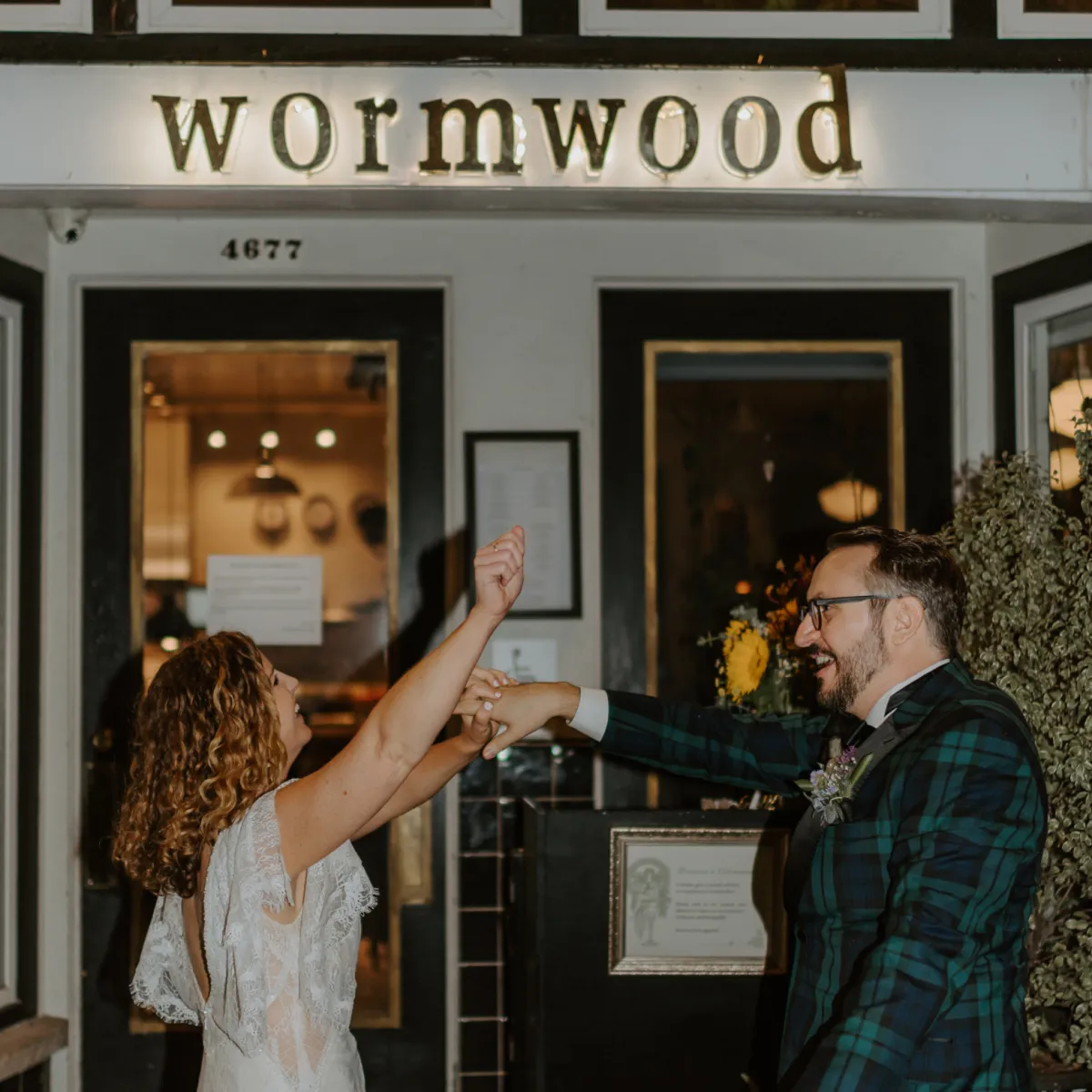 "Absolutely stunning. We hosted our wedding at Wormwood and it felt like stepping into a little corner of Paris in San Diego. The candlelight, vintage glassware, and garden patio gave us a romantic backdrop that needed almost no extra décor. Our guests kept raving about the French-inspired menu and how attentive the team was, from planning to the last toast. It was elegant, intimate, and effortless all at once."